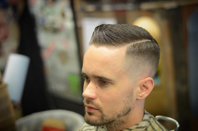 วัดและท้ายทอยควรไถสั้นมาก แต่ปล่อยผมบนกระหม่อมให้ยาวกว่าอย่างชัดเจน