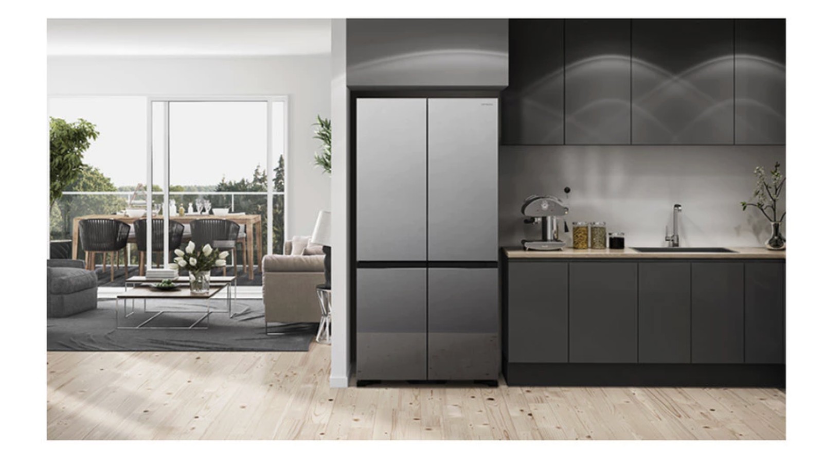 Hitachi ตู้เย็นมัลติดอร์ รุ่น R-WB640VFX เป็นตู้เย็นแบบ French Bottom Freezer ความจุ 20.1 คิว หรือ 569 ลิตร ที่ออกแบบมาเพื่อตอบโจทย์บ้านยุคใหม่ โดยเน้นทั้งความเป็นระเบียบ ฟังก์ชันที่ใช้งานได้จริง และดีไซน์ที่ดูพรีเมียมแบบไม่ต้องพยายาม