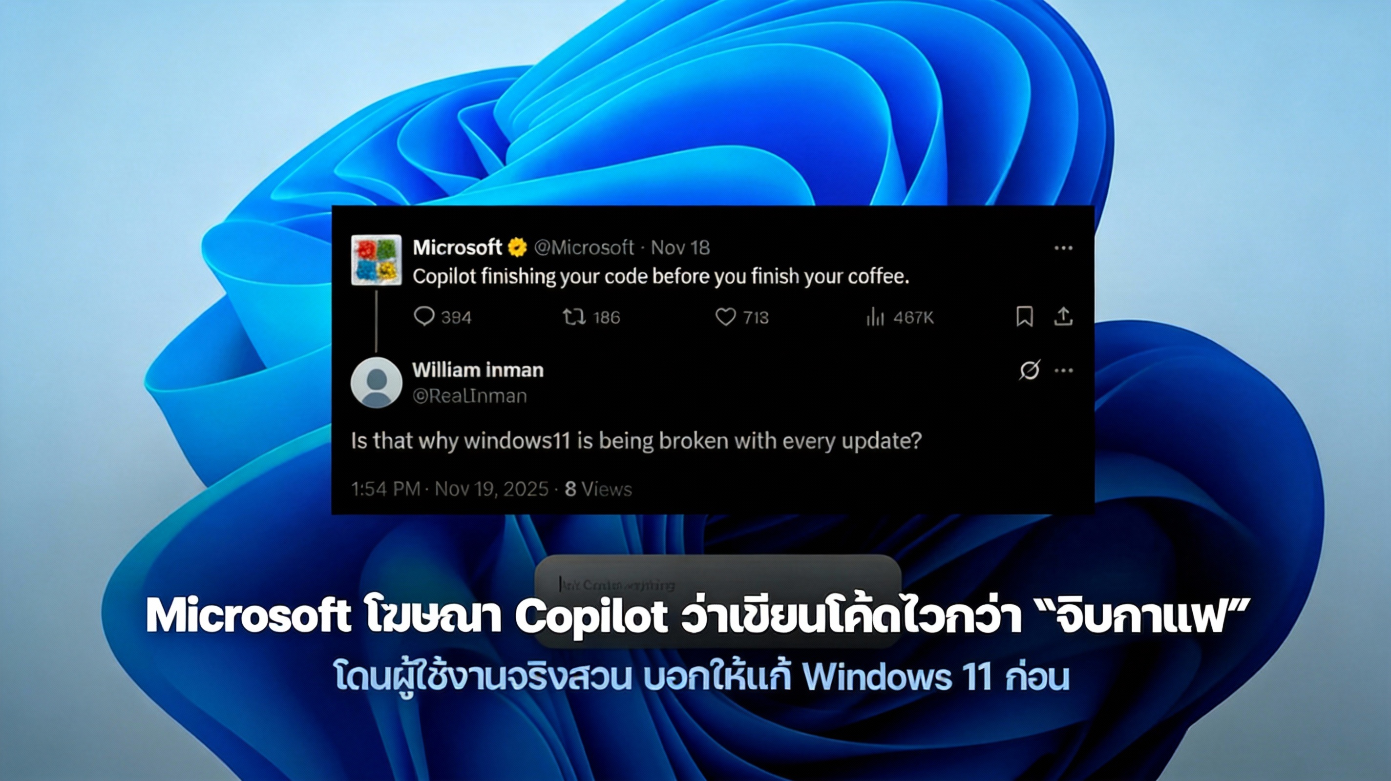 “ถ้า Copilot เขียนโค้ดให้ Microsoft จริง ก็อธิบายได้ว่าทำไม Windows 11 ถึงพังทุกอัปเดต”