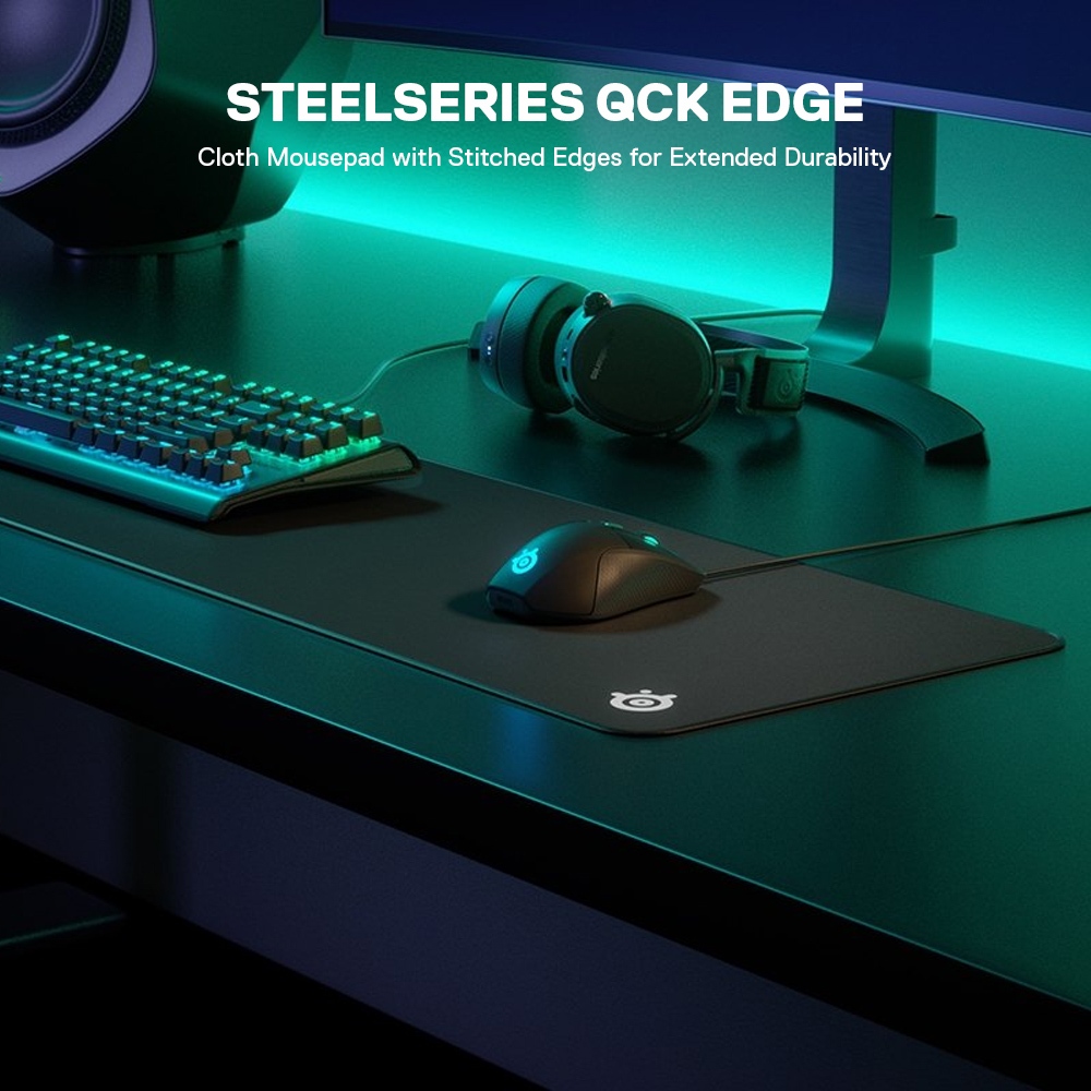 SteelSeries QcK Edge คือแผ่นรองเมาส์เกมมิ่งในตระกูล QcK ซึ่งเป็นซีรีส์ที่ได้รับความนิยมสูงสุดของ SteelSeries จุดเด่นของรุ่น Edge คือการเพิ่ม การเย็บขอบรอบแผ่น เพื่อเสริมความทนทาน ลดปัญหาขอบรุ่ย และยืดอายุการใช้งานในระยะยาว