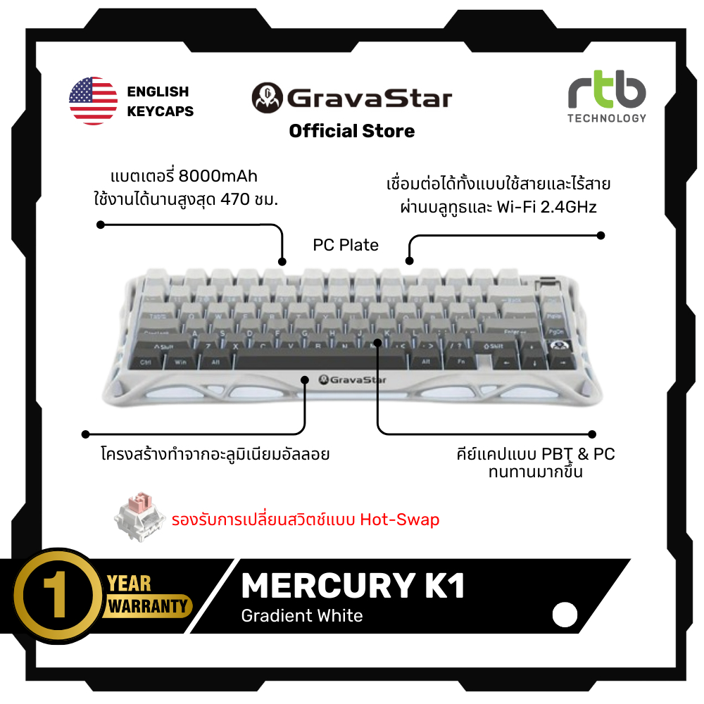GravaStar Mercury K1 75% คือคีย์บอร์ดที่รวม