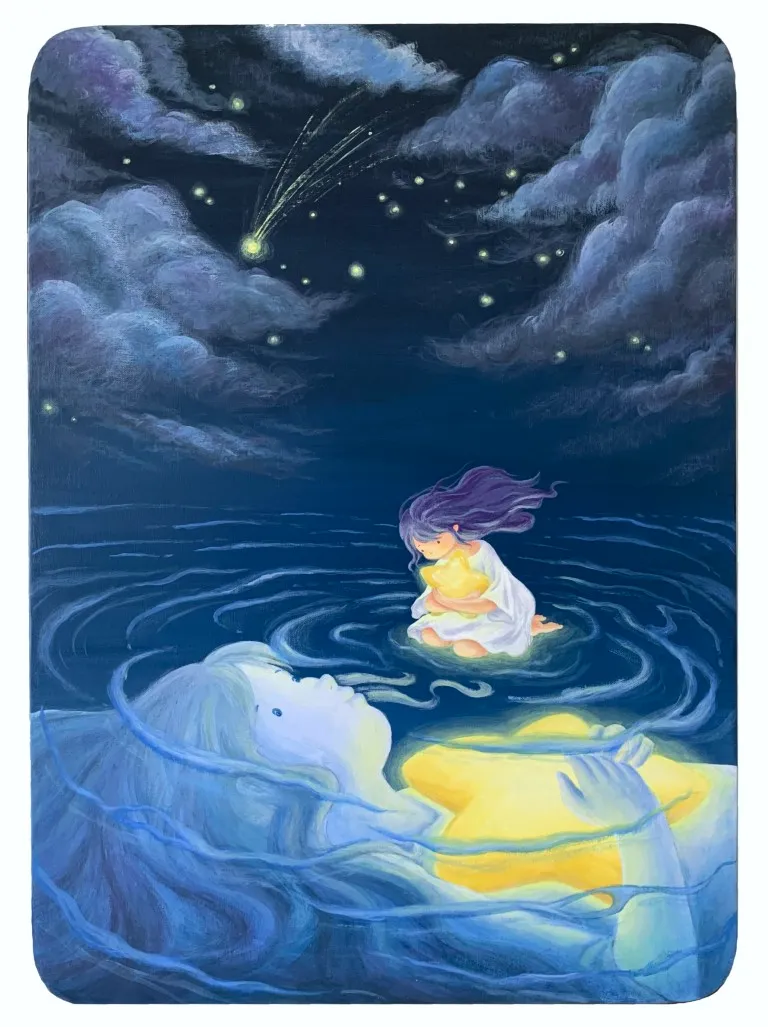 เธอมักหยิบภาพจากสถานที่ที่เคยเดินทางไปแล้วรู้สึกประทับใจกลับมาสร้างใหม่ ด้วยโทนสีสบายตา และบรรยากาศที่แฝงกลิ่นอายแฟนตาซี ปัจจุบันเธอกำลังสนใจการเติมองค์ประกอบเหนือจริงผ่านเหล่าสัตว์ทะเลนานาชนิด โดยเฉพาะ “วาฬ” ที่สำหรับเธอเป็นสัญลักษณ์ของทั้งความอิสระและความอบอุ่น