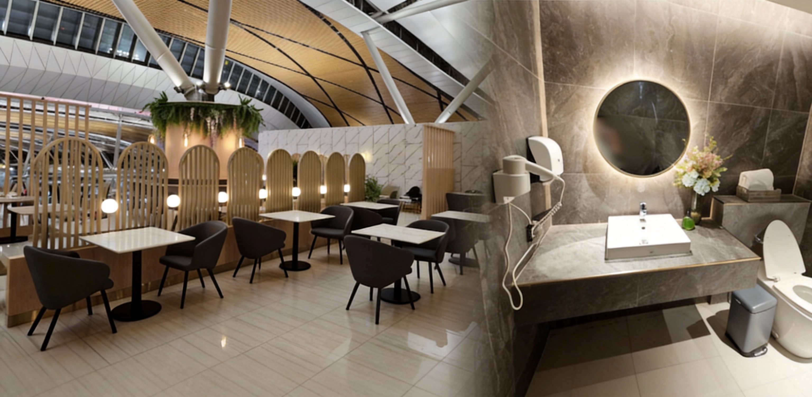 เก้าอี้จัดเรียงเป็นโซน นั่งคนเดียว คู่ หรือมากับเพื่อนก็เลือกมุมได้ตามใจ เหมาะกับคนที่อยากนั่งรอไฟลต์แบบเงียบ ๆ ไม่ต้องไปแออัดหน้าเกท