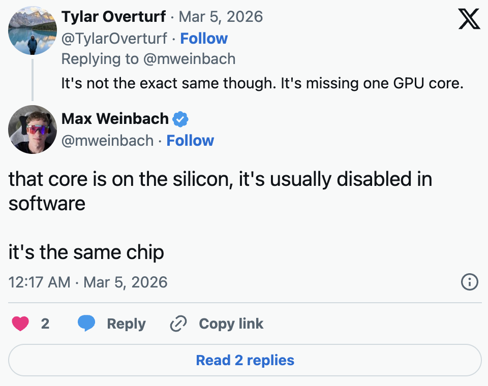 มีอีกจุดที่น่าสนใจเกี่ยวกับชิปใน MacBook Neo