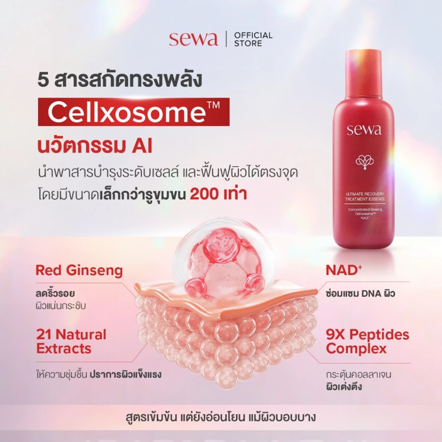 ในวันที่ผิวต้องเผชิญทั้งฝุ่น ควัน แสงแดด ความเครียด และการพักผ่อนไม่เพียงพอ ปัญหาผิวจึงไม่ได้มีแค่ “แห้ง” หรือ “หมองคล้ำ” เท่านั้น แต่ยังรวมถึงผิวอ่อนแอ แพ้ง่าย สิวขึ้นซ้ำ และริ้วรอยก่อนวัย การดูแลผิวในยุคนี้จึงต้องมากกว่าการบำรุงพื้นฐาน และนี่คือเหตุผลที่เอสเซนส์ฟื้นฟูผิวอย่าง Sewa Ultimate Recovery Treatment Essence ได้รับความสนใจจากคนที่ต้องการ “รีเซตผิว” ให้กลับมาแข็งแรงอีกครั้ง