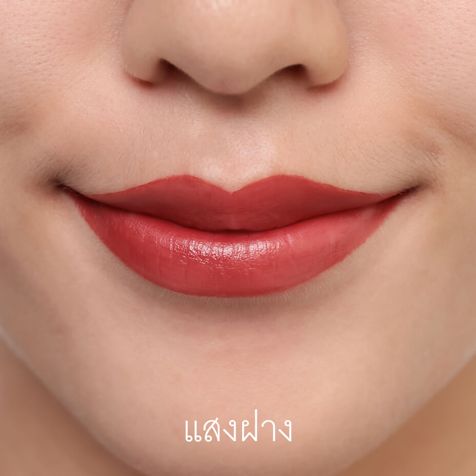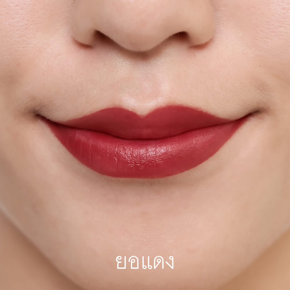 โทนนี้คือ แดงเข้มที่สุด ในคอลเลกชัน แดงแบบตะวันยอแสง ให้สีชัด ติดทน แต่ยังคงความชุ่มชื้นอยู่ ปรับลุคให้ดูมั่นใจขึ้นทันทีที่ทา