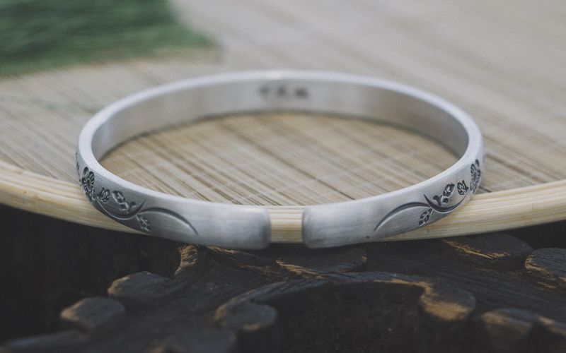 สร้อยแขนเงินหิมะทำจากเงินบริสุทธิ์ 999‰ แกะสลักลวดลายและคำอวยพรตามความเชื่อของชนเผ่านาซี เป็นเครื่องประดับที่มีทั้งความหมายดีและความงดงามในชิ้นเดียว