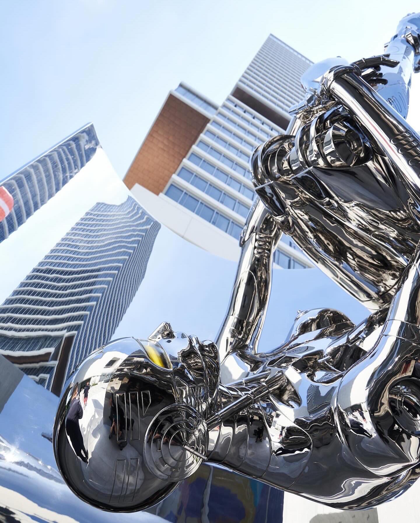 นอกจากประติมากรรมขนาดยักษ์แล้ว เขายังนำลายเซ็นความเป็นโลหะมันวาวและเสน่ห์ของ Sexy Robot ไปต่อยอดในงานออกแบบแฟชั่น เช่น