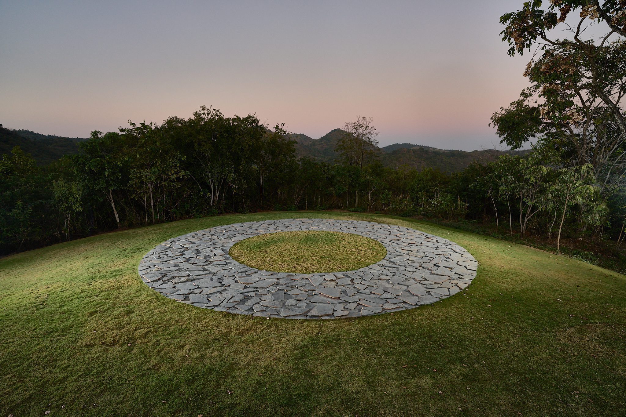 ผลงาน Madrid Circle โดย Richard Long ตั้งอยู่บนเนินเขาสูงในพื้นที่ของ Khao Yai Art Forest มีหน้าตาเรียบง่าย แต่มาแนว มินิมอลที่เต็มไปด้วยสติ