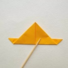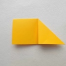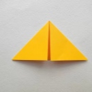 พับอีกครั้งคราวนี้งอมุมทั้งสองด้านเข้าหาศูนย์กลางให้ได้สามเหลี่ยมสมมาตรทั้งสองข้าง