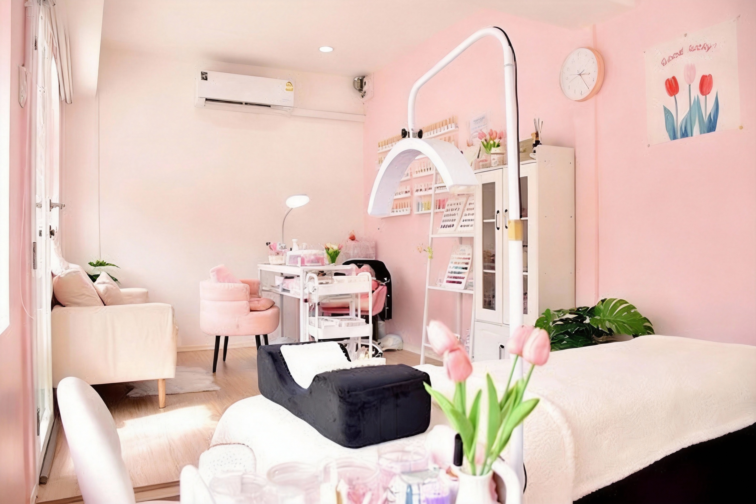 ร้านนี้เป็นสไตล์คาเฟ่โทนน่ารัก อบอุ่น เป็นกันเอง นั่งทำเล็บ–ต่อขนตายาว ๆ แบบไม่อึดอัด ได้ฟีลมุมพักผ่อนเล็ก ๆ ในย่านนี้เลยก็ว่าได้