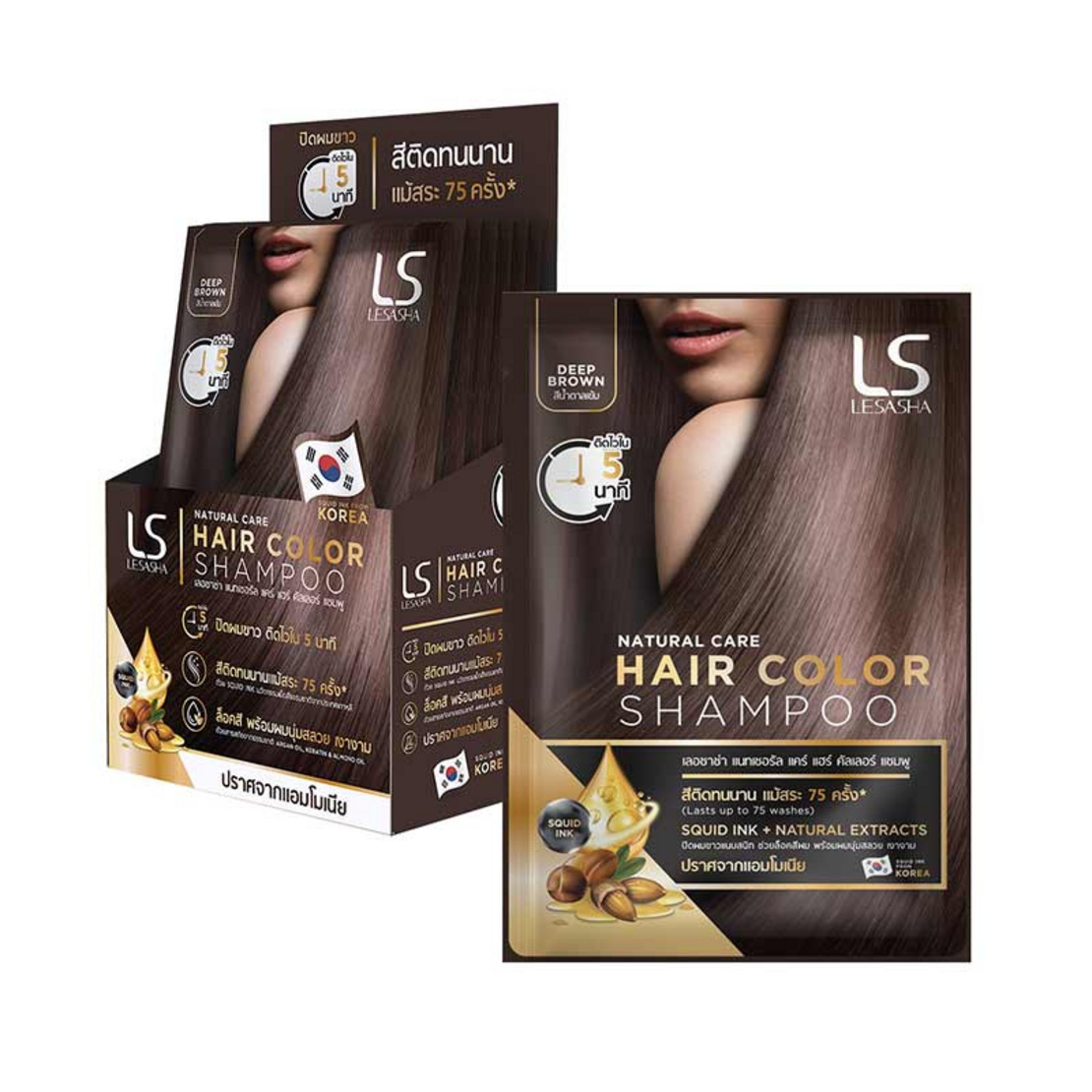 สาวๆ ที่อยากได้ลุคสวยมั่น ดูสุภาพ เรียบร้อย แต่ยังแอบมีเสน่ห์แบบสาวเกาหลี ต้องลอง Le’sasha Natural Care Hair Color Shampoo สีน้ำตาลเข้ม ตัวนี้เลย ใช้ง่ายเหมือนแชมพูทั่วไป แค่สระทิ้งไว้ประมาณ 5-10 นาที ก็ได้สีผมใหม่แบบไม่ยุ่งยาก