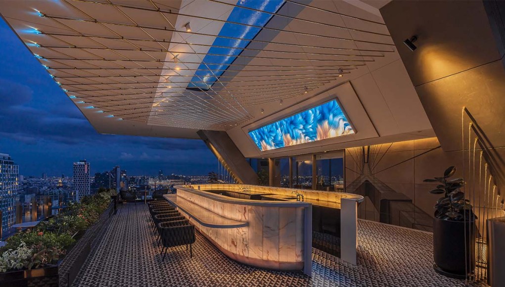 ที่นี่เป็นรูฟท็อปบาร์ที่หยิบเอาวัฒนธรรมสเปนมาคลุกเคล้ากับความเป็นกรุงเทพฯ ได้อย่างเข้ากัน งานดีไซน์สถาปัตยกรรมเต็มไปด้วยดีเทล ทั้งมุม แสง และเส้นสายที่ตั้งใจออกแบบให้รองรับช่วงเวลาพระอาทิตย์ตกโดยเฉพาะ
