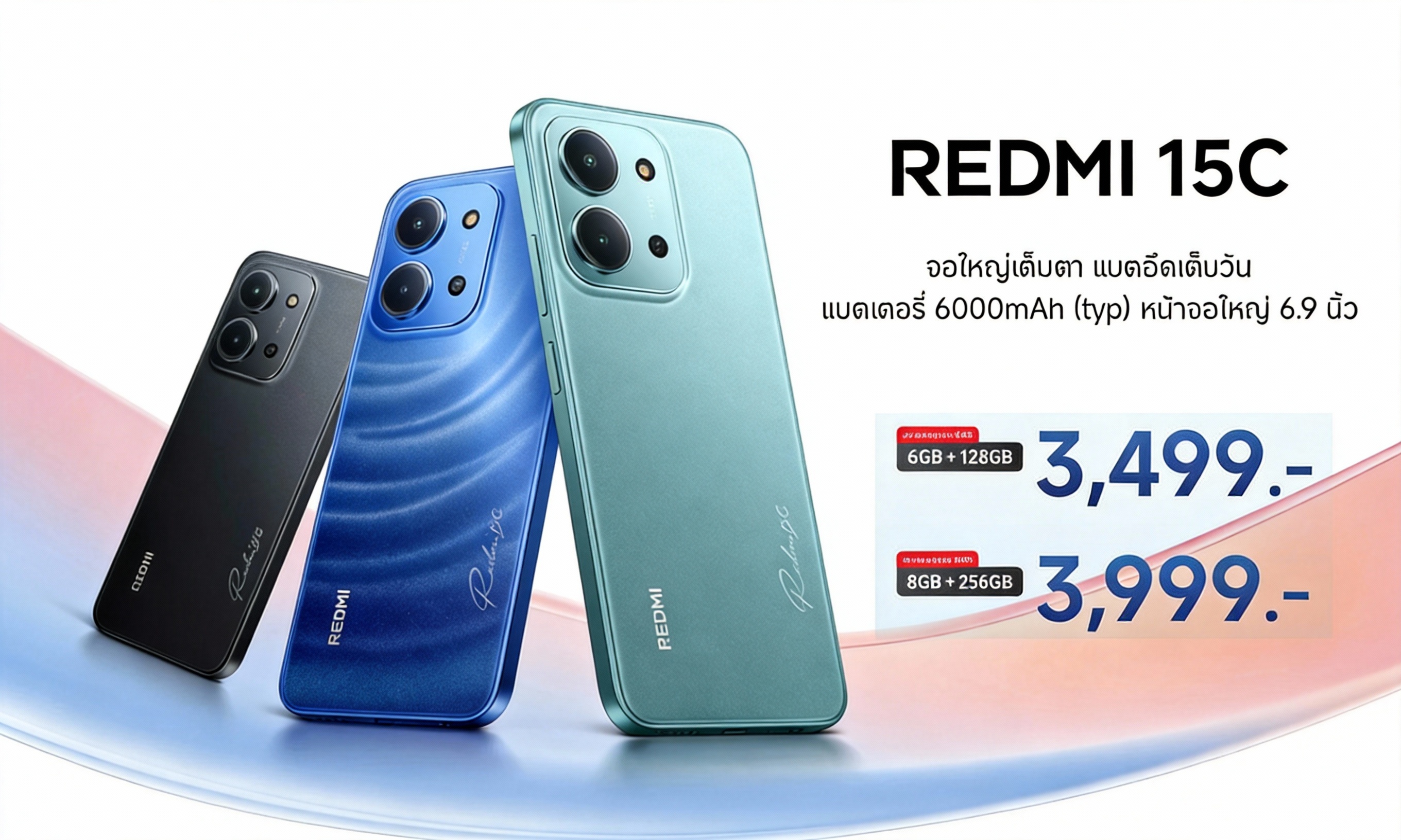 Xiaomi ประเทศไทยเปิดตัว Redmi 15C สมาร์ทโฟนตัวบางดีไซน์สวย มาพร้อมจอใหญ่ แบตอึด และชาร์จไว ในราคาเริ่มต้นเพียง 3,499 บาท จัดเต็มโปรของแถมและสิทธิพิเศษเพียบ เหมาะมากสำหรับสายงบจำกัดที่อยากได้มือถือใช้งานครบ ๆ ทั้งบันเทิง ทำงาน และโซเชียล