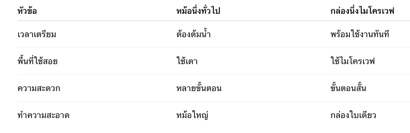 เปรียบเทียบ: นึ่งหม้อธรรมดา vs กล่องนึ่งไมโครเวฟ
