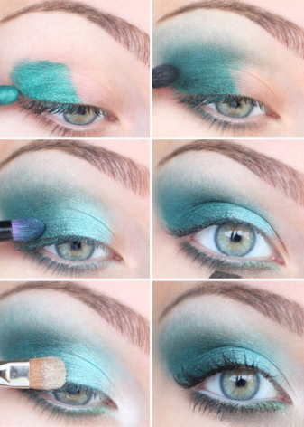 เมคอัพโทนเขียวบางแบบอาจเข้ากับดวงตาสีเขียวหรือโทนน้ำตาลอำพันได้ดีมาก โทนเขียวเย็นเหมาะกับสาวผิวขาว ส่วนโทนเขียวอุ่นจะเหมาะกับสาวผิวแทนในเดรสสีฟ้าคราม ทุกอย่างขึ้นอยู่กับการลองจริงและการปรับให้เข้ากับตัวเอง