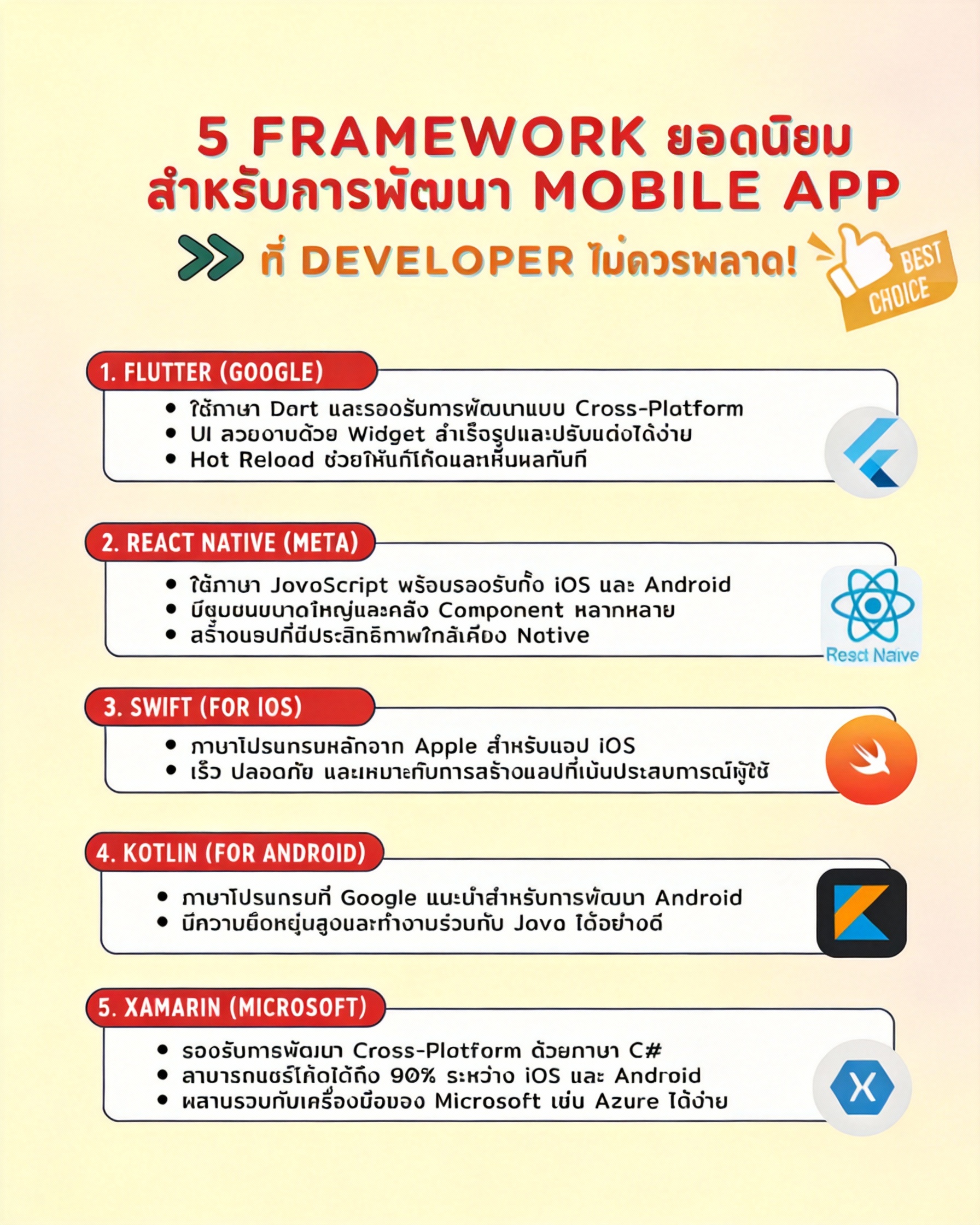 การจะทำแอพดีๆ สักตัว ไม่ได้เริ่มที่การเขียนโค้ด แต่เริ่มที่การเลือก Framework ที่เหมาะกับเป้าหมายและทีมของคุณ เพราะเลือกพลาด แปลว่าเสียทั้งเวลา งบ และโอกาสทางธุรกิจ