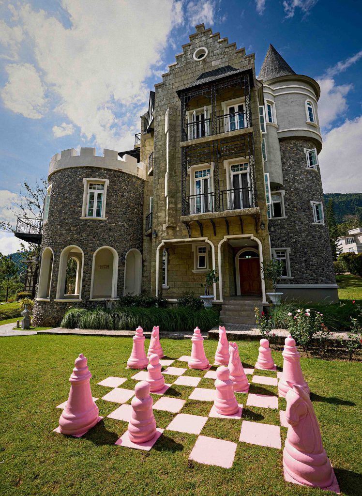 ตัวปราสาทล้อมด้วยสวนดอกไม้ สนใหญ่ และลานหญ้าที่โดดเด่นด้วยประติมากรรมกระดานหมากรุกสีชมพูหวาน เมื่อก้าวเข้าบ้าน ชั้นแรกด้านปีกซ้ายคือครัวในฝันของคนรักการทำอาหาร เต็มไปด้วยเครื่องครัวและอุปกรณ์สุดโปรดของธันย่า รวมถึงชุดสวยที่เธอเก็บสะสมซึ่งถูกใช้ในแฟชั่นเซ็ตต่างๆ