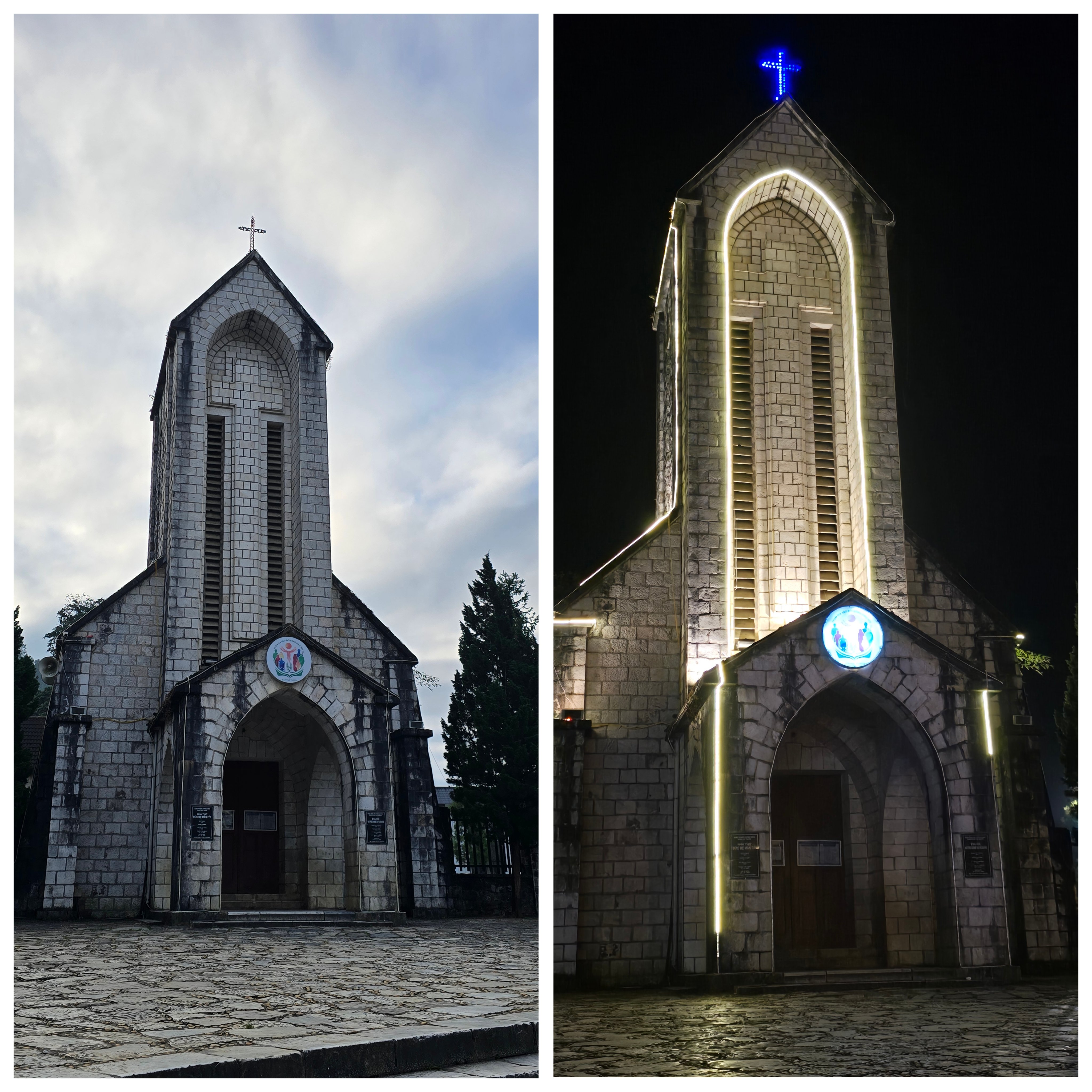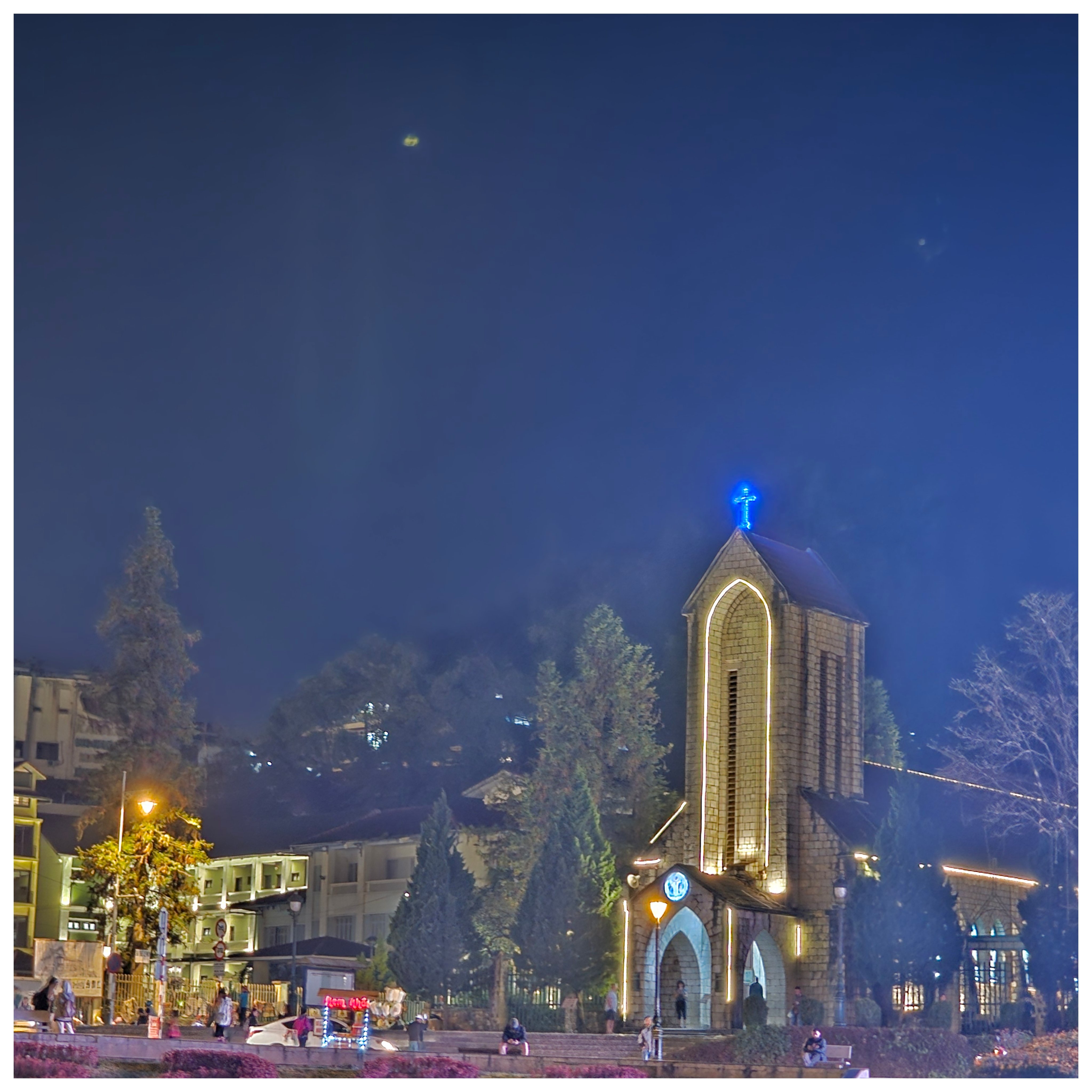 🛕 วิหารซาปา (Notre Dame Cathedral) เป็นโบสถ์เก่าแก่ที่สร้างด้วยสไตล์โคโลเนียล ได้รับอิทธิพลจากสถาปัตยกรรมฝรั่งเศส ตัวอาคารสีหม่นๆ ตัดกับหมอกและแสงไฟยามค่ำคือสวยมาก