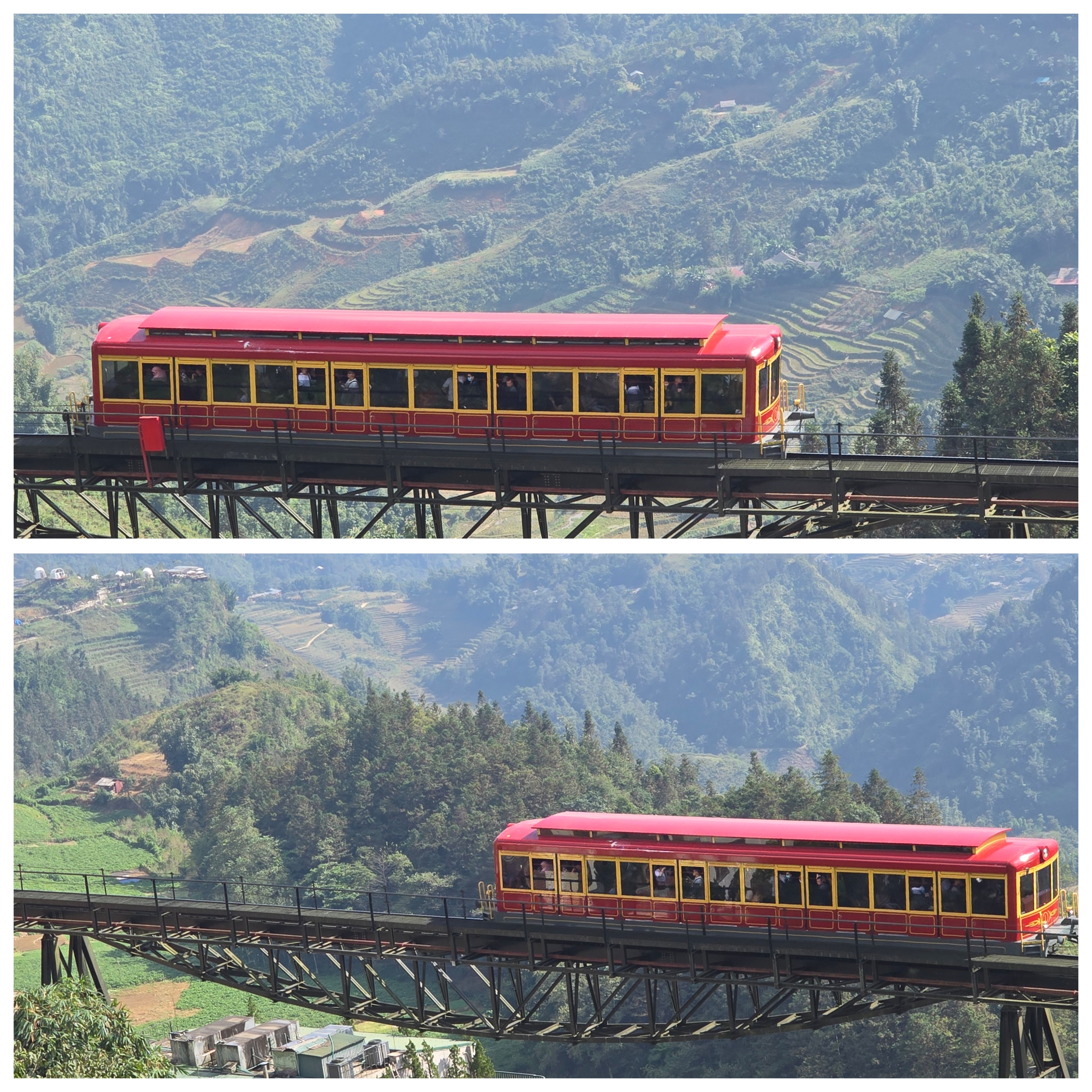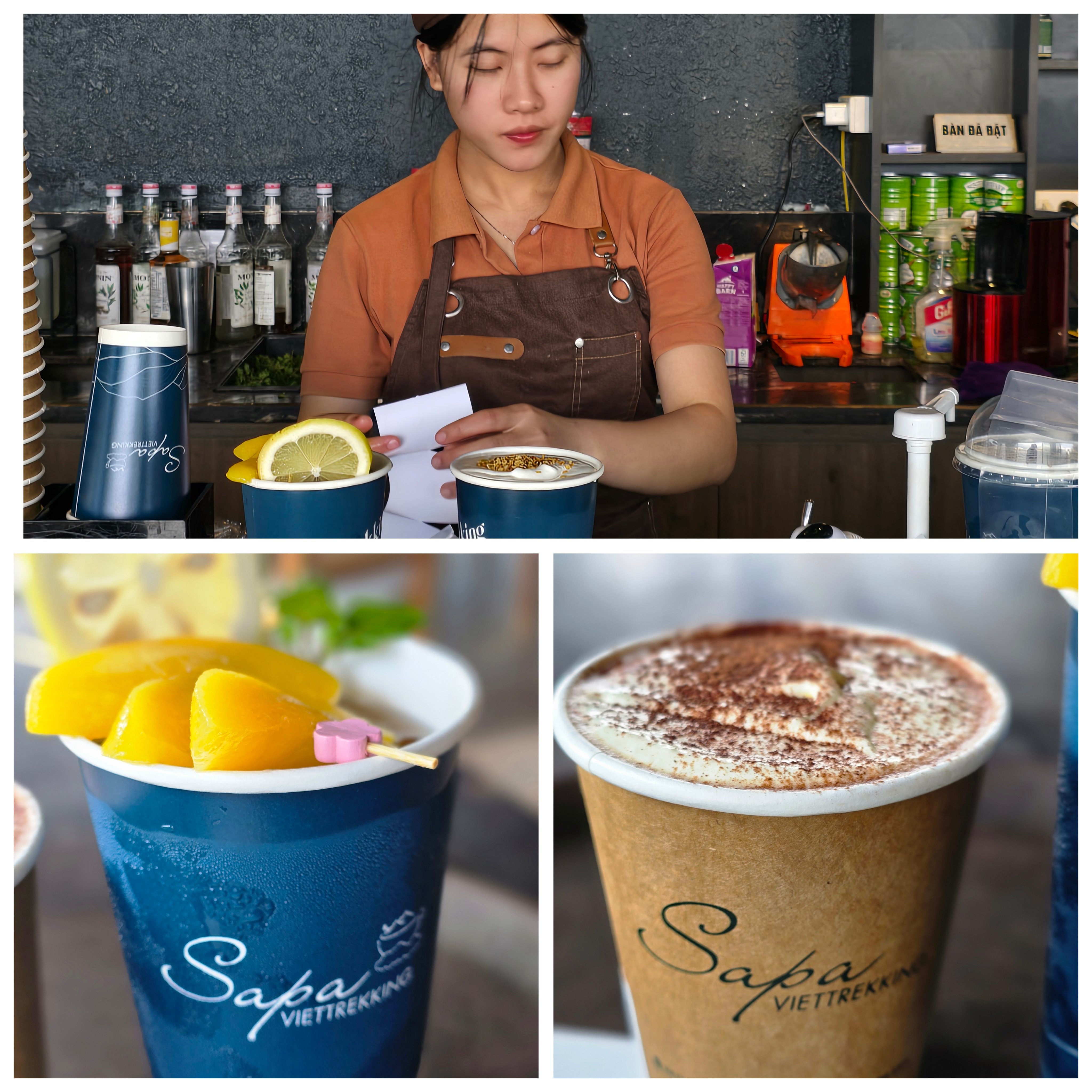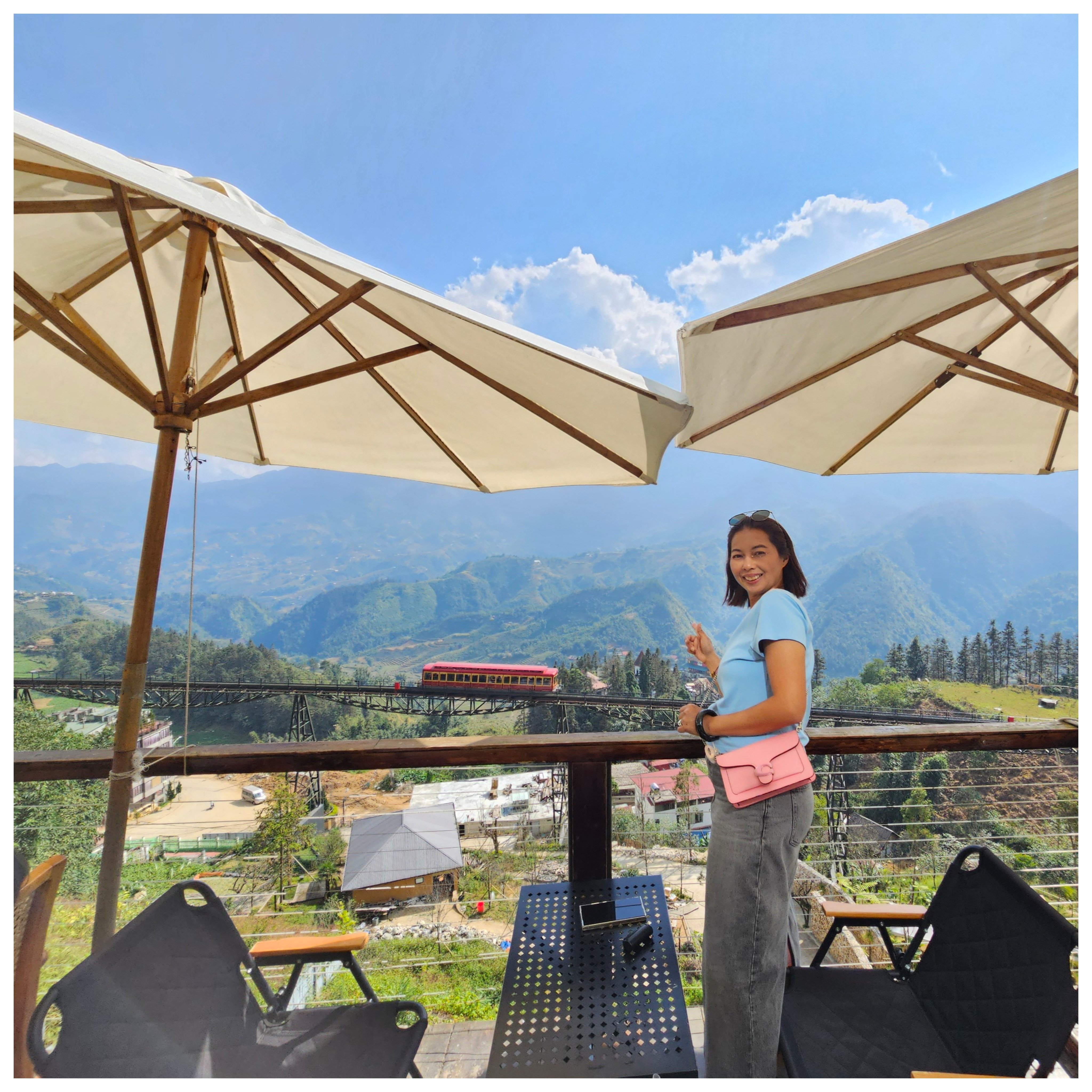 🚂 Viettrekking Coffee & Restaurant เป็นทั้งคาเฟ่และร้านอาหารที่วิวสวยแบบตัวท็อปของซาปา เพราะมองเห็นวิวภูเขาฟานซีปันแบบเต็มตา และยังเห็นรถราง 🚃 วิ่งผ่านระหว่างเส้นทางจากตึก Sun Plaza ขึ้นไป Fansipan ด้วย