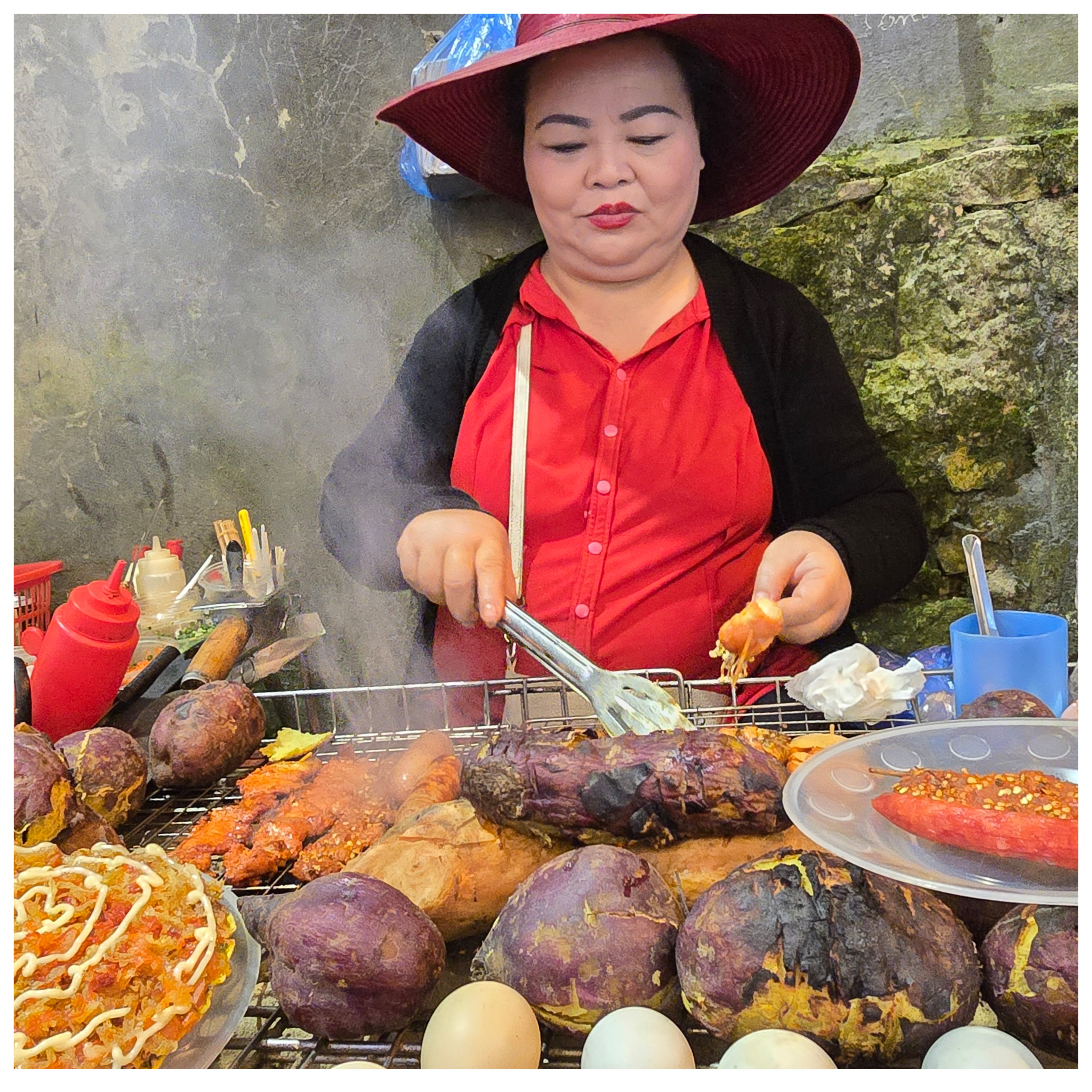 กลับมาพักที่โรงแรมสักพัก รอให้ฟ้ามืด เพราะตั้งใจจะออกไปเก็บภาพโบสถ์ใกล้ๆ Sapa Center แต่ระหว่างทาง ดันไปสะดุดตา แม่ค้าชุดแดง ร้านปิ้งย่างที่เห็นใส่ชุดสีแดงทุกวัน ลูกค้าแน่นสุดตั้งแต่วันแรกที่มาถึง