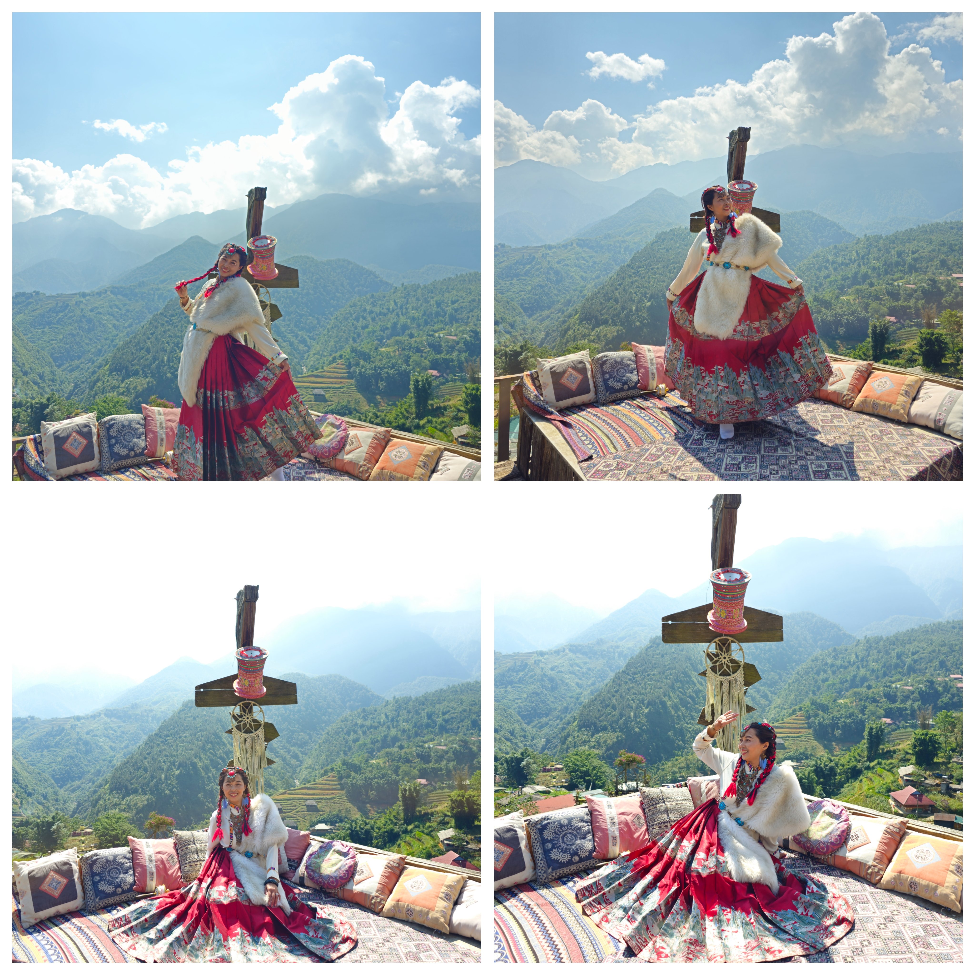 เลือกชุดเสร็จ แต่งหน้าทำผมครบแล้ว ทางร้านยังจัด มุมถ่ายรูปดาดฟ้า ให้ด้วย วิวด้านบนคือมองออกไปเห็นภูเขา เมือง และบรรยากาศแบบซาปาเต็มๆ