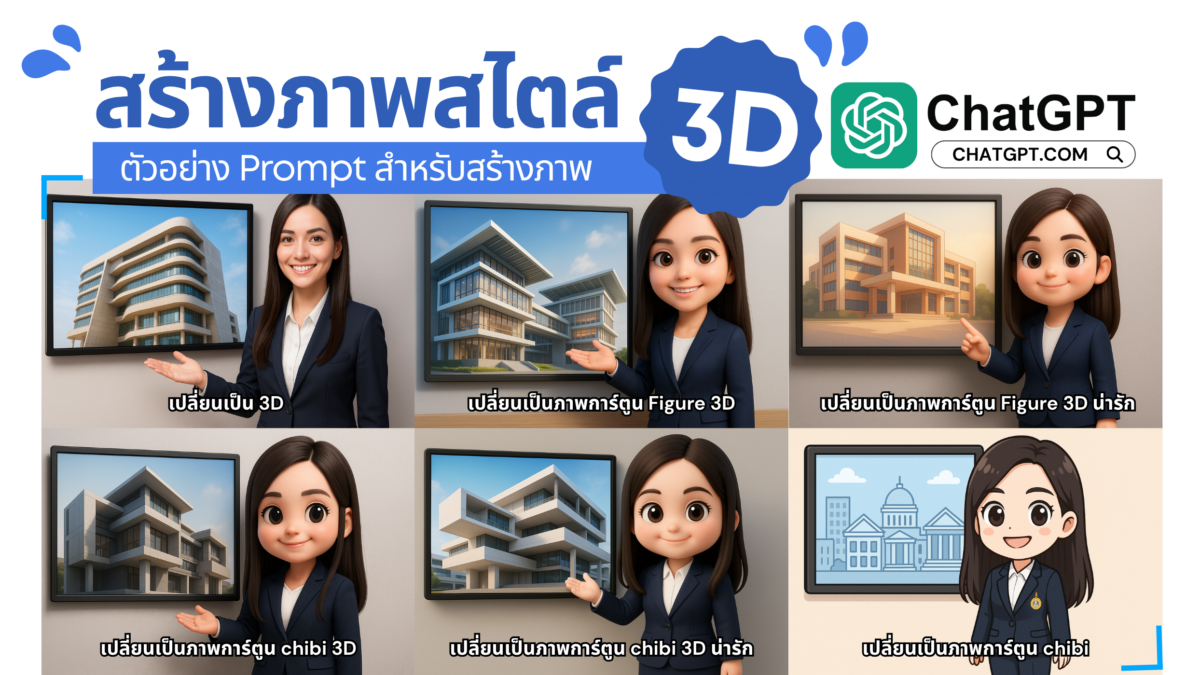 ด้านล่างนี้คือไอเดีย Prompt ที่ออกแบบมาเน้น สไตล์ 3D Chibi Realistic สำหรับครู นักศึกษา และบรรยากาศในมหาวิทยาลัย ปรับใช้ต่อได้ง่ายมาก