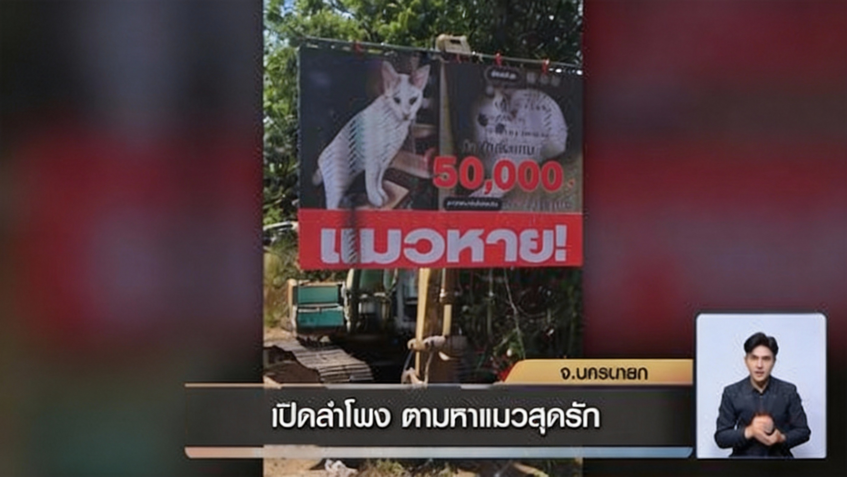 ไอเดียยุคดิจิทัล ขึ้นจอ LED บนรถแบคโฮตามหาแมว