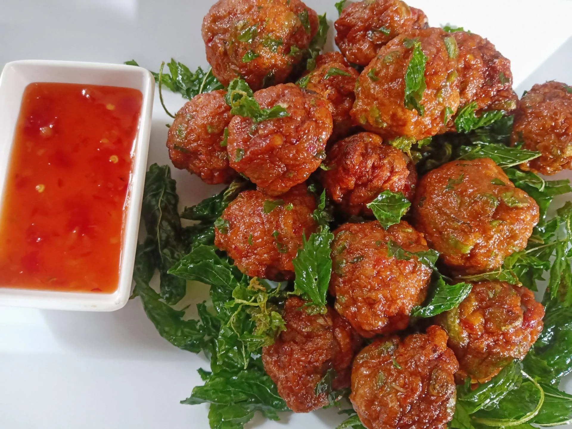 และความสดของผักและสมุนไพรที่คลุกอยู่ในเนื้อทอดมัน