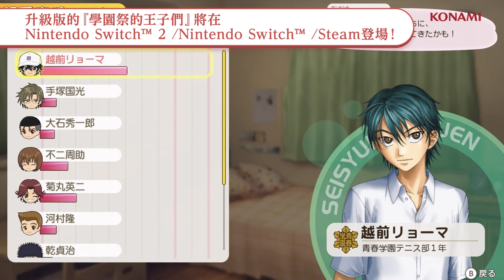 The Prince of Tennis กลับมาอีกครั้งในรูปแบบเกมแนวผจญภัยโรแมนติก โดยครั้งนี้มีการเปิดให้สั่งจองล่วงหน้าสองภาคใหม่ ได้แก่ Sweet School Festival และ Doki Doki Survival ซึ่งมีกำหนดวางจำหน่ายพร้อมกันในวันที่ 30 กรกฎาคมนี้ บนหลายแพลตฟอร์ม ทั้ง Nintendo Switch และ Steam
