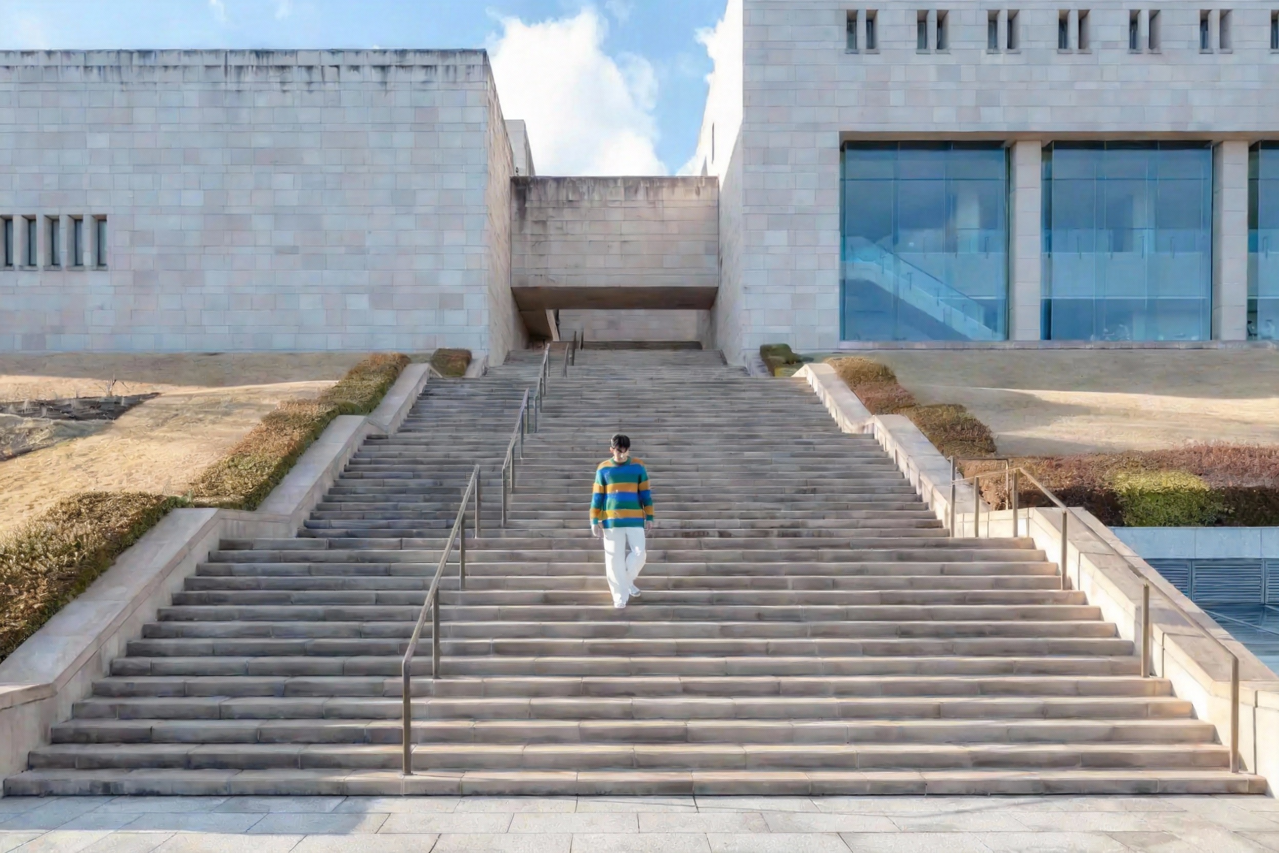 อาคารหลักไม่ได้มีดีแค่ของที่จัดแสดง แต่ตัวสเปซเองก็เหมือนงานศิลปะชิ้นใหญ่ เดินไปมุมไหนก็จะเจอจังหวะแสง เงา และเส้นสายสถาปัตยกรรมที่ชวนหยิบกล้องขึ้นมาถ่ายแบบรัว ๆ