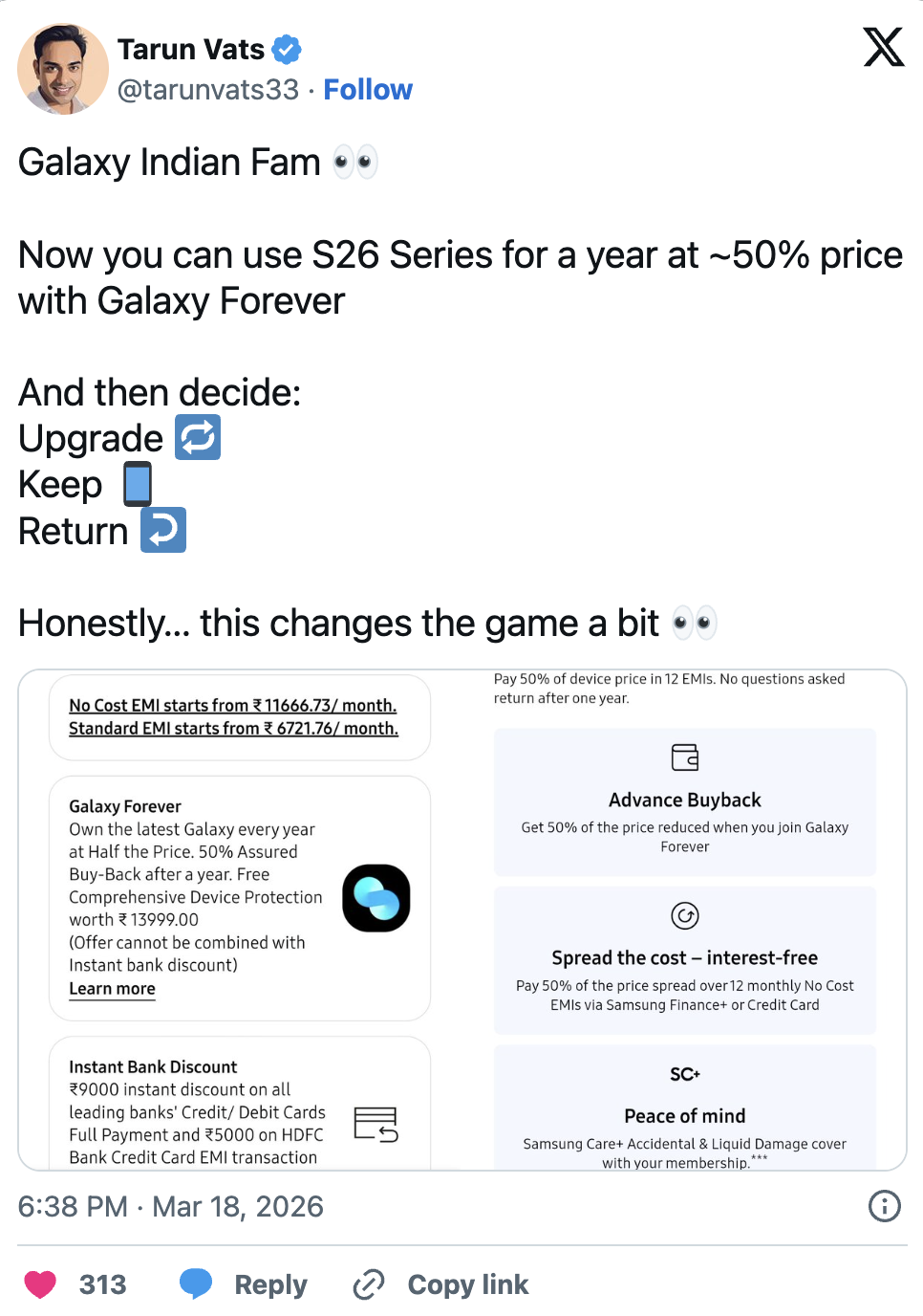 Galaxy S26 ไม่ได้มีแค่สเปกใหม่ แต่ยังมาพร้อมแนวทางการซื้อแบบใหม่ ที่ช่วยลดภาระค่าใช้จ่ายและเพิ่มความยืดหยุ่นให้ผู้ใช้