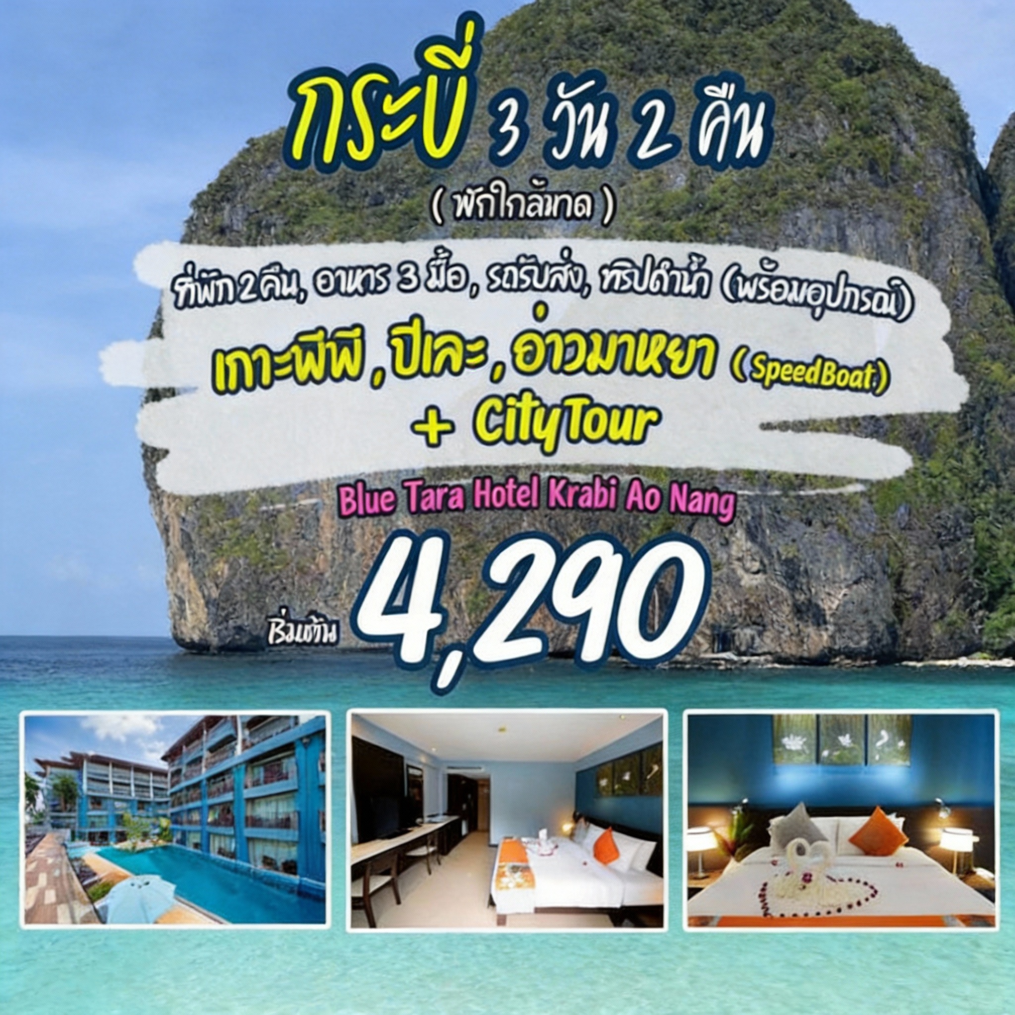 อยากหนีไปทะเลใส ๆ นอนชิลล์ใกล้อ่าวนาง แล้วออกเรือไปเกาะพีพี ปิเละ อ่าวมาหยา แถมมี City tour ให้ครบในทริปเดียวใช่ไหม?