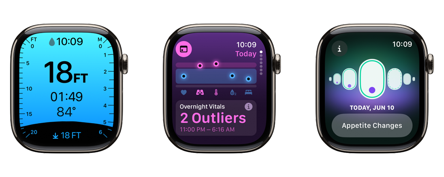 ในรุ่นล่าสุดนี้ Apple Watch มาพร้อมหน้าจอที่ใหญ่ขึ้น ดีไซน์บางลง น้ำหนักเบาลงราว 10% ช่วยให้ใส่สบายขึ้นในทุกสถานการณ์ เสียงสนทนาดีขึ้นแม้อยู่ในที่ที่มีเสียงดัง และยังสามารถเล่นสื่อผ่านลำโพงในตัวได้ทันที