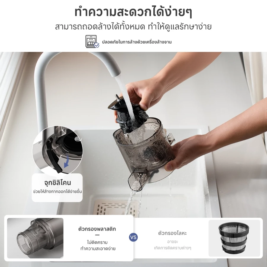 การล้างทันทีหลังใช้งานช่วยลดการเกาะตัวของกากผลไม้และป้องกันกลิ่นอับในตัวเครื่อง