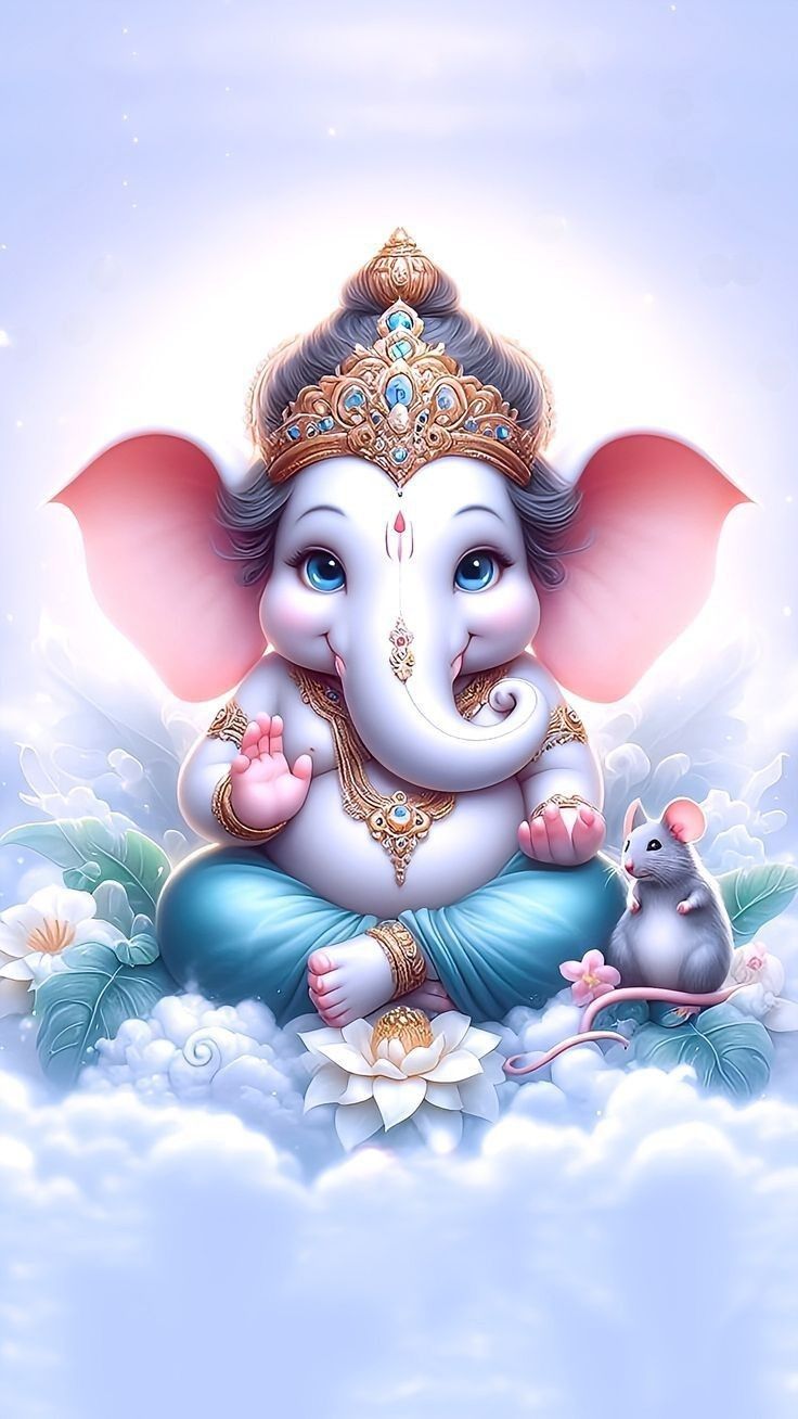 หนู (วาหนะ) : สัตว์พาหนะของพระองค์ เปรียบถึงการเอาชนะความโลภและความปรารถนาที่ไม่สิ้นสุด