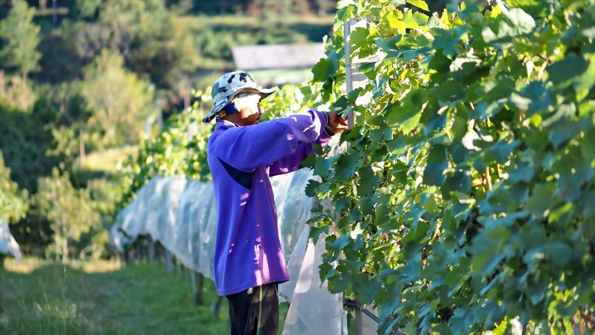 จุดที่น่าสนใจคือไร่นี้ใช้เทคนิคจัดทรงต้นองุ่นแบบ Lyre Trellising System ซึ่งไม่ค่อยได้เห็นบ่อยในไทย ช่วยให้พุ่มองุ่นรับแสงแดดได้เต็มที่ ส่งผลโดยตรงกับคุณภาพของผลผลิต