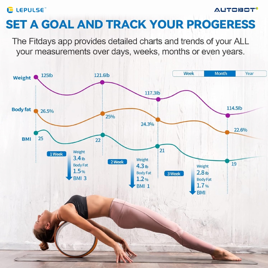 AUTOBOT Lescale P3 ใช้งานร่วมกับแอป Fitday ที่ออกแบบมาให้ดูข้อมูลได้ง่าย และเห็นแนวโน้มในระยะยาว