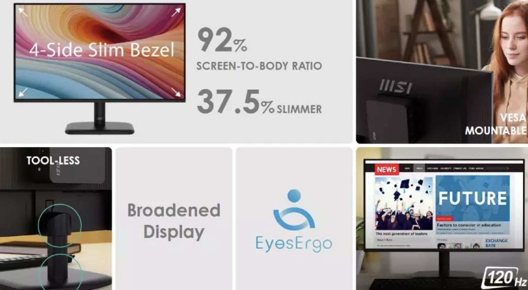 จุดเด่นที่แตกต่างจากจอทำงานทั่วไปคือ อัตรารีเฟรชเรท 120Hz ซึ่งให้ความลื่นไหลมากกว่าจอ 60Hz อย่างเห็นได้ชัด