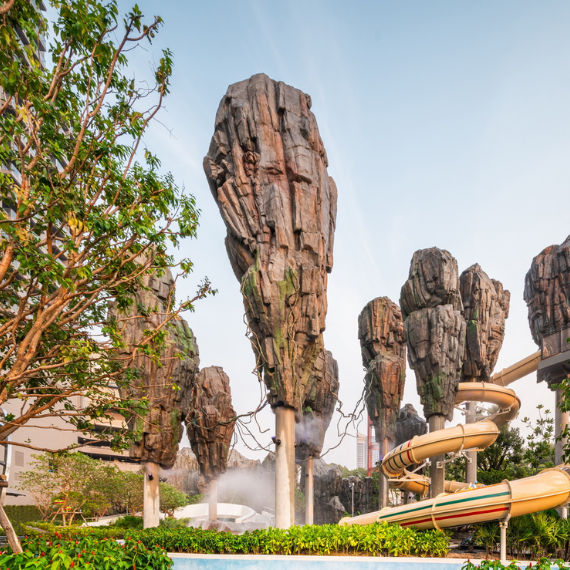 สวนน้ำสุดใหญ่ มีสไลเดอร์และโซนเล่นน้ำสำหรับเด็ก ๆ