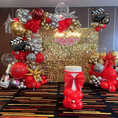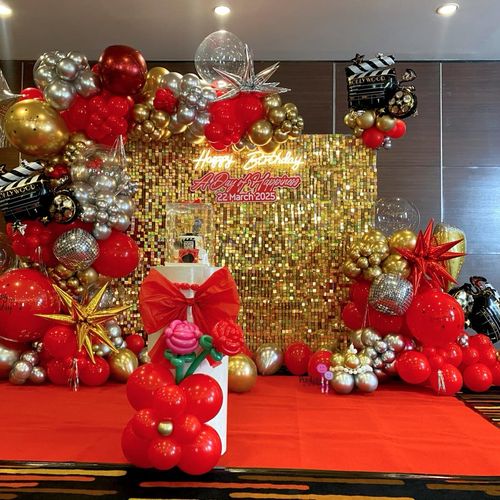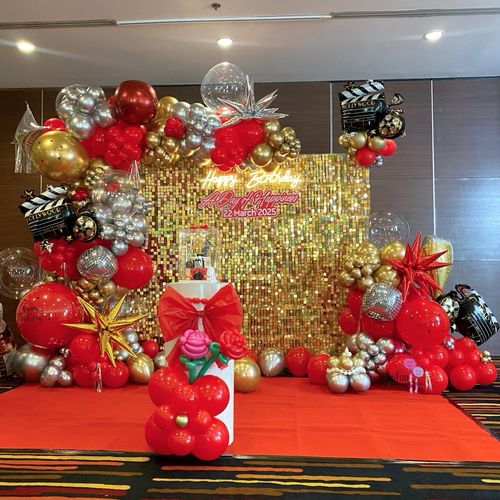 ยิ่งจัดคู่กับลูกโป่งฟอยล์เมทัลลิก เฉดทอง แดง เงิน บอกเลยว่าได้ฟีลงานฮอลลีวูดเต็มขั้น ถ่ายรูปออกมาดูแพงแบบไม่ต้องพยายามเยอะ