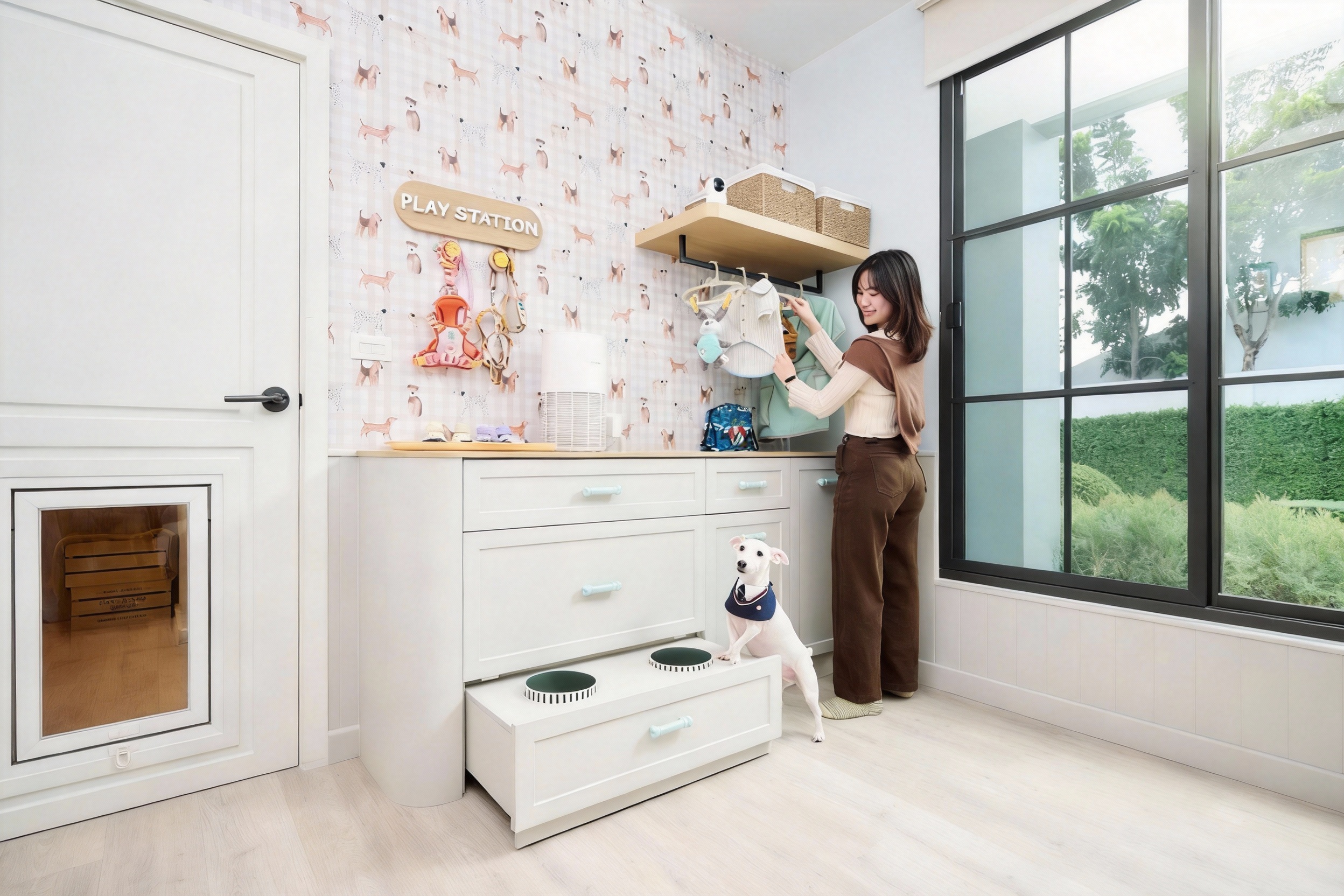 2. Pet Cabinet & Built-in Food Station – มุมจัดเก็บสุดเนี๊ยบของทาสสัตว์