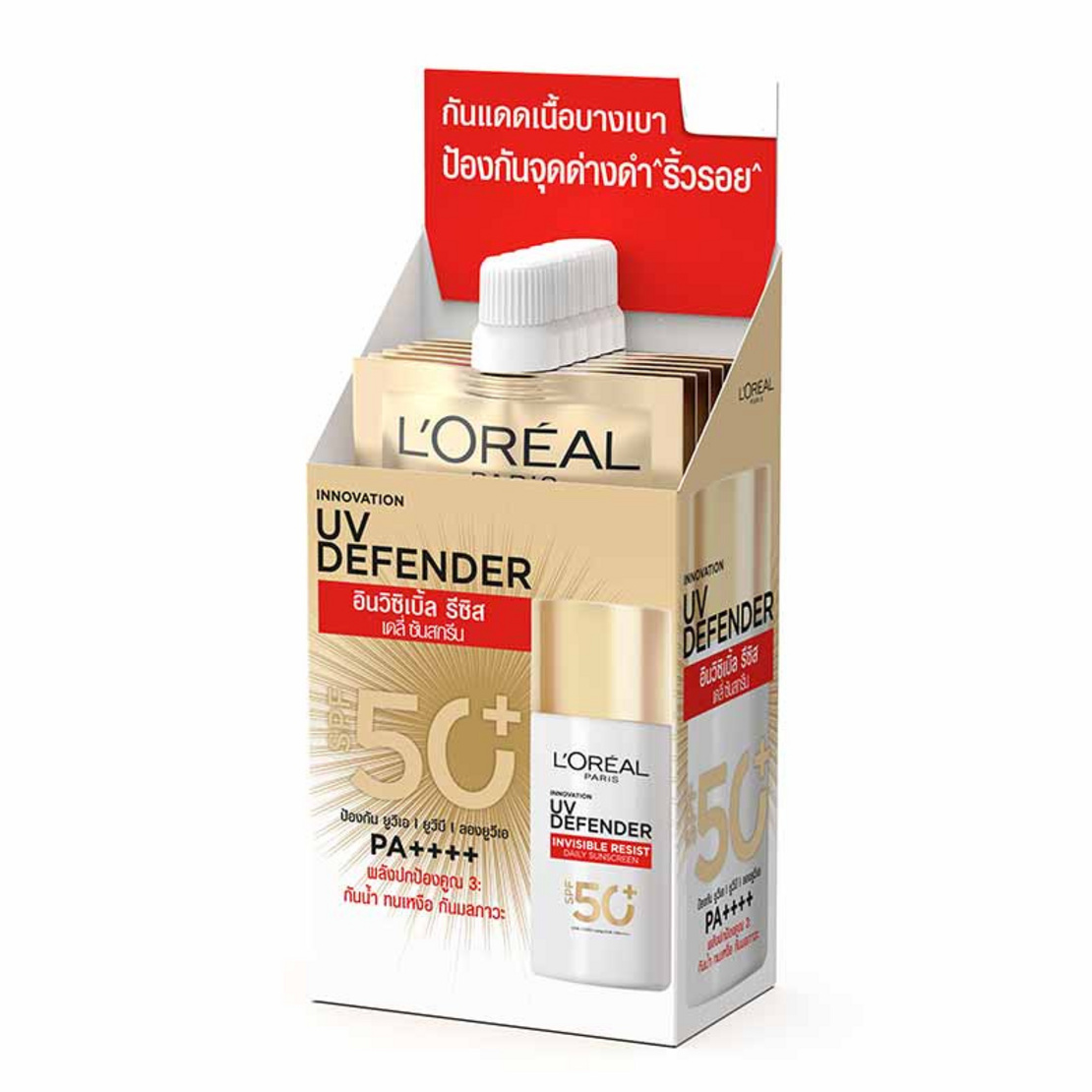5. L’Oreal UV Defender Invisible Resist Daily Sunscreen SPF50+ PA++++ (แพ็กซอง)