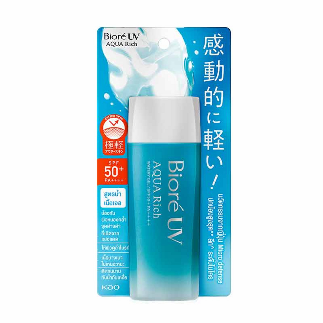 สายกันแดดเนื้อเจลบางเบา ต้องจัด Biore UV Aqua Rich ตัวดังเลยค่ะ จุดเด่นคือเนื้อเจลที่ บางเบามาก ซึมไว ไม่เหนอะ ไม่เป็นคราบขาว บนผิวเลย