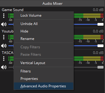 ที่ Audio Mixer คลิกขวา เลือก Advanced Audio Properties