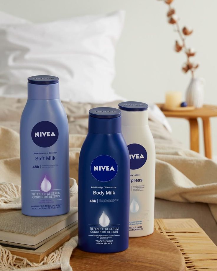ผิวแห้งหรือแห้งมาก: เลือกเนื้อครีมเข้มข้นอย่าง NIVEA Creme หรือลง Body Milk ให้ทั่วก่อน แล้วตามด้วยครีมเข้มข้นเฉพาะจุดที่แห้งมาก