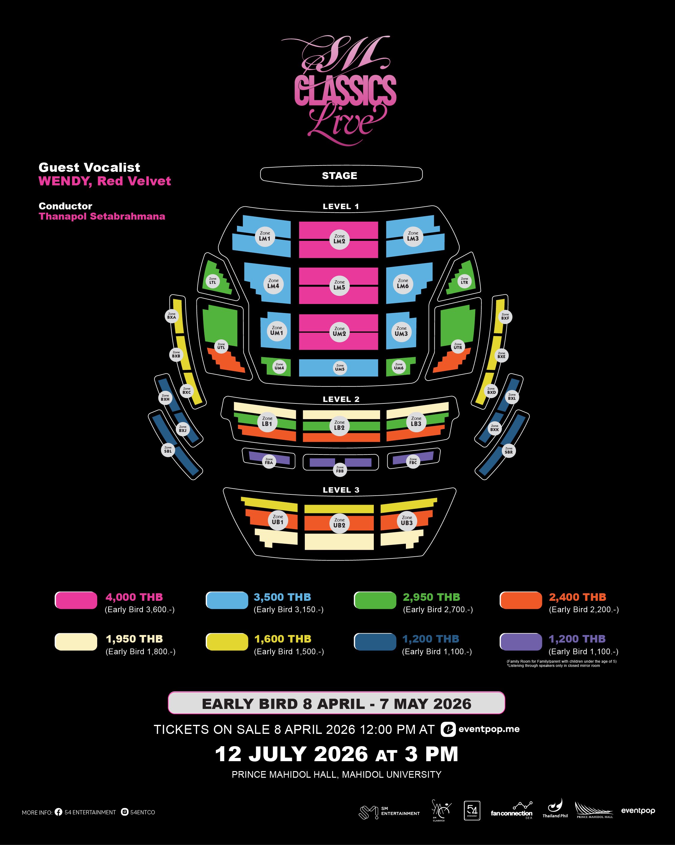 สำหรับผู้ที่สนใจเข้าชม SM Classics Live Thailand สามารถกดบัตรได้ในวันที่ 8 เมษายน 2026