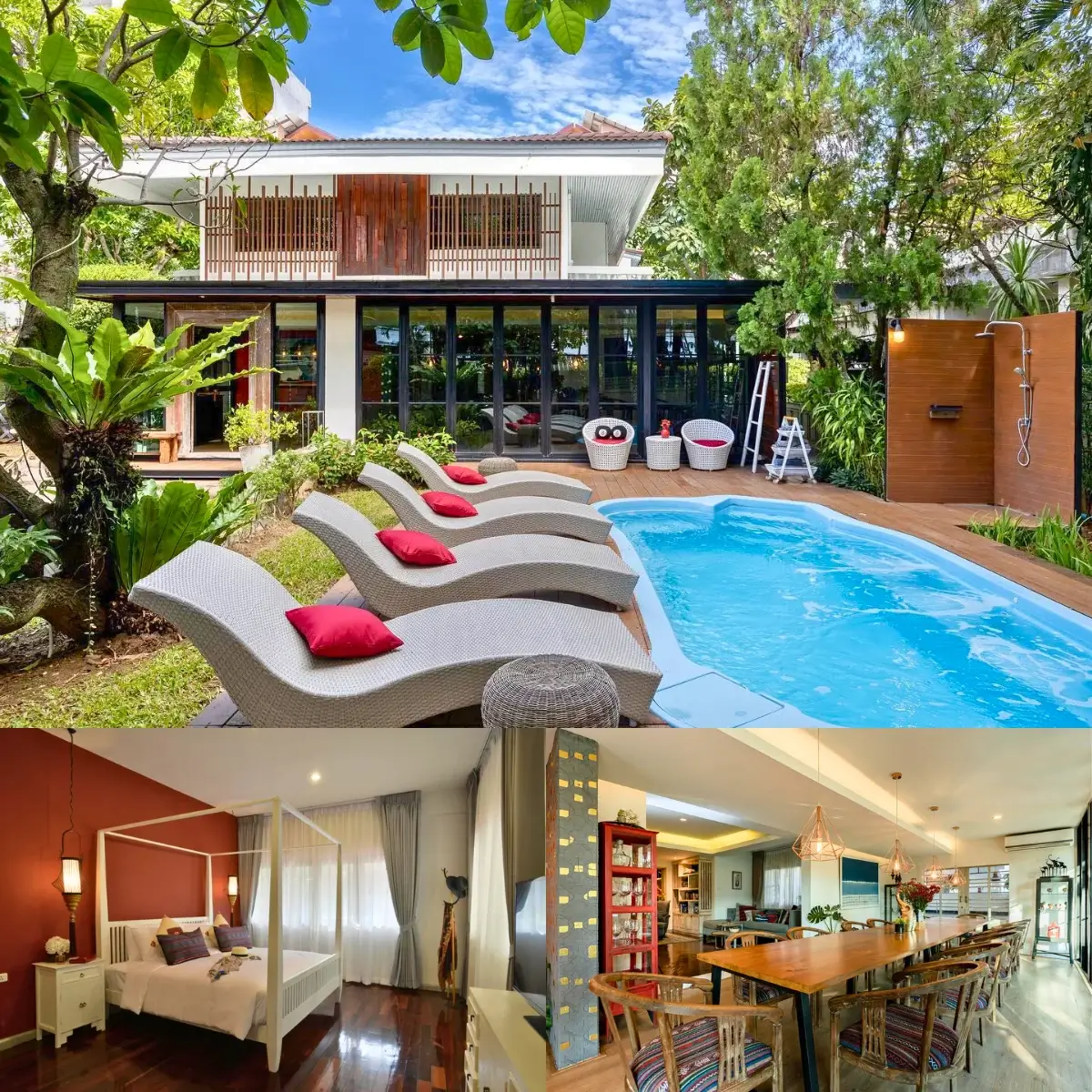 ปิดท้ายด้วยพูลวิลล่าสุดหรูในเมืองเชียงใหม่ เดินทางสะดวกมาก แค่ข้ามแม่น้ำปิงจากตัวเมืองมาไม่นานก็ถึงแล้ว