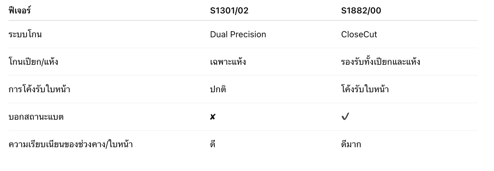 💡 ถ้าคุณต้องการความเรียบเนียนมากขึ้น รองรับการโกนทั้งเปียกและแห้ง