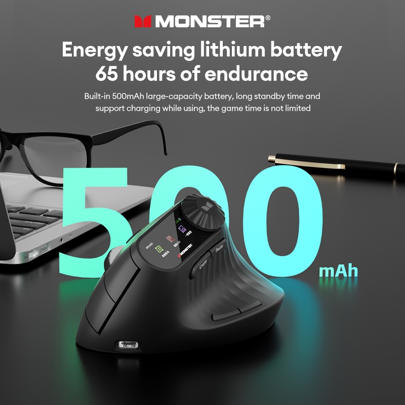 Monster M2 MAX เป็นเมาส์ไร้สายแนวตั้ง (Vertical Mouse) ที่ออกแบบตามหลักสรีรศาสตร์ เพื่อช่วยให้การวางมือเป็นธรรมชาติมากขึ้น ลดแรงกดที่ข้อมือและกล้ามเนื้อแขน
